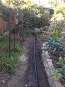 After the workshops, an effective drip irrigation system was added and then a flagstone path was laid in the garden. The result is beautiful! The food forest will continue to grow and evolve as the years go by, more species are added to the mix, and the homeowners begin harvesting! There may be a crop of blueberries this year already.